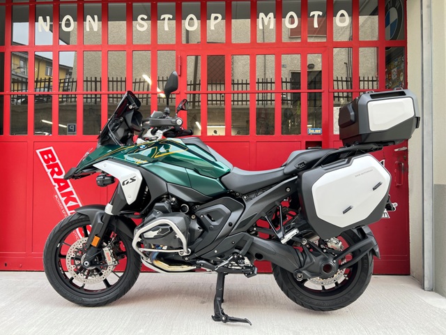 Bmw r 1300 Gs versione Tramuntana, immatricolata il 06/03/2024, Km 2091, scadenza bollo marzo 2027 e scadenza revisione marzo 2028. Moto Full optional con tutti i pacchetti Bmw (touring-dynamic-comfort-innovation), equipaggiata di radar, abbassatore elettronico, cerchi da enduro forgiati, sella comfort riscaldata, top case holder, sistema di chiamata di emergenza e teleservice, parabrezza elettrico, pacchetto estetic shadow. Moto accessoriata con tris borse originali Bmw, terminale di scarico doppio, paramotori tubolari, sottocoppa maggiorato enduro, protezione faro, parabrezza brunito + kit deflettroi carbon, faretti a led, estensione becco, estensione cavalletto laterale. Moto venduta tagliandata e con garanzia casa madre fino al 2028.